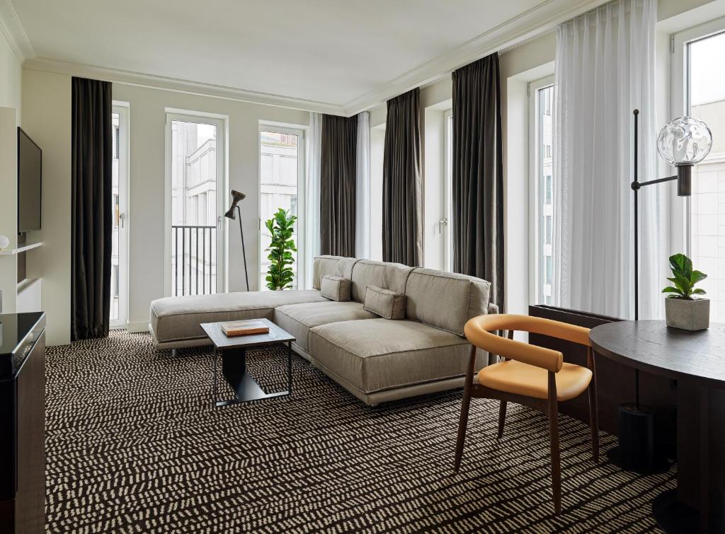 rooms and a 24-hour fitness center. The spacious, air-conditioned rooms of the Berlin Marriott Hotel feature mahogany furnishings, a satellite TV and a laptop safe. Bathrobes and slippers are provided and room service is available 24-hours a day. American specialties are served in the Berlin Marriott’s Midtown Grill, featuring an open kitchen and summer terrace.The restaurant The Big Dog serves delicious hot dogs, fancy fries and refreshing drinks. The Lobby Lounge offers a wide range of snacks and drinks, including cocktails. Potsdamer Platz Train Station is 200 m away, offering connections via Berlin’s U2 underground line and S-Bahn city trains.. A tour desk helps guests plan their visit. This is our guests' favorite part of Berlin, according to independent reviews. Couples in particular like the location – they rated it 9.5 for a two-person trip.